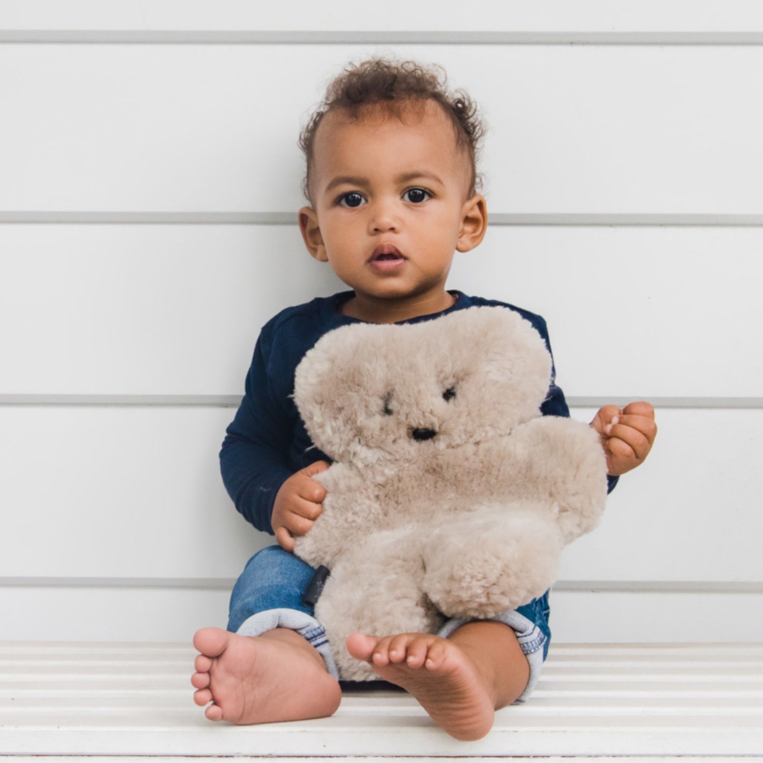 Handmade from 100% Australian sheepskin, this cuddly FLATOUTbear is naturally calming, beautifully soft and irresistibly huggable. The ultimate natural comforter and companion.