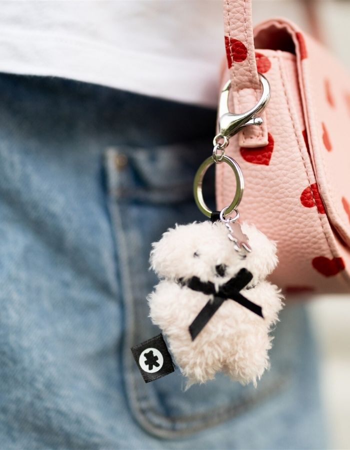 Created with soft furry-feel fabric that mimics the charm of our iconic FLATOUTbear, this teeny-tiny version is full of personality in a perfectly pocket-sized package. At just 6cm tall, Rosie is ready to join you on every adventure — whether jingling on your keys or adding a dash of adorable to your favourite bag.